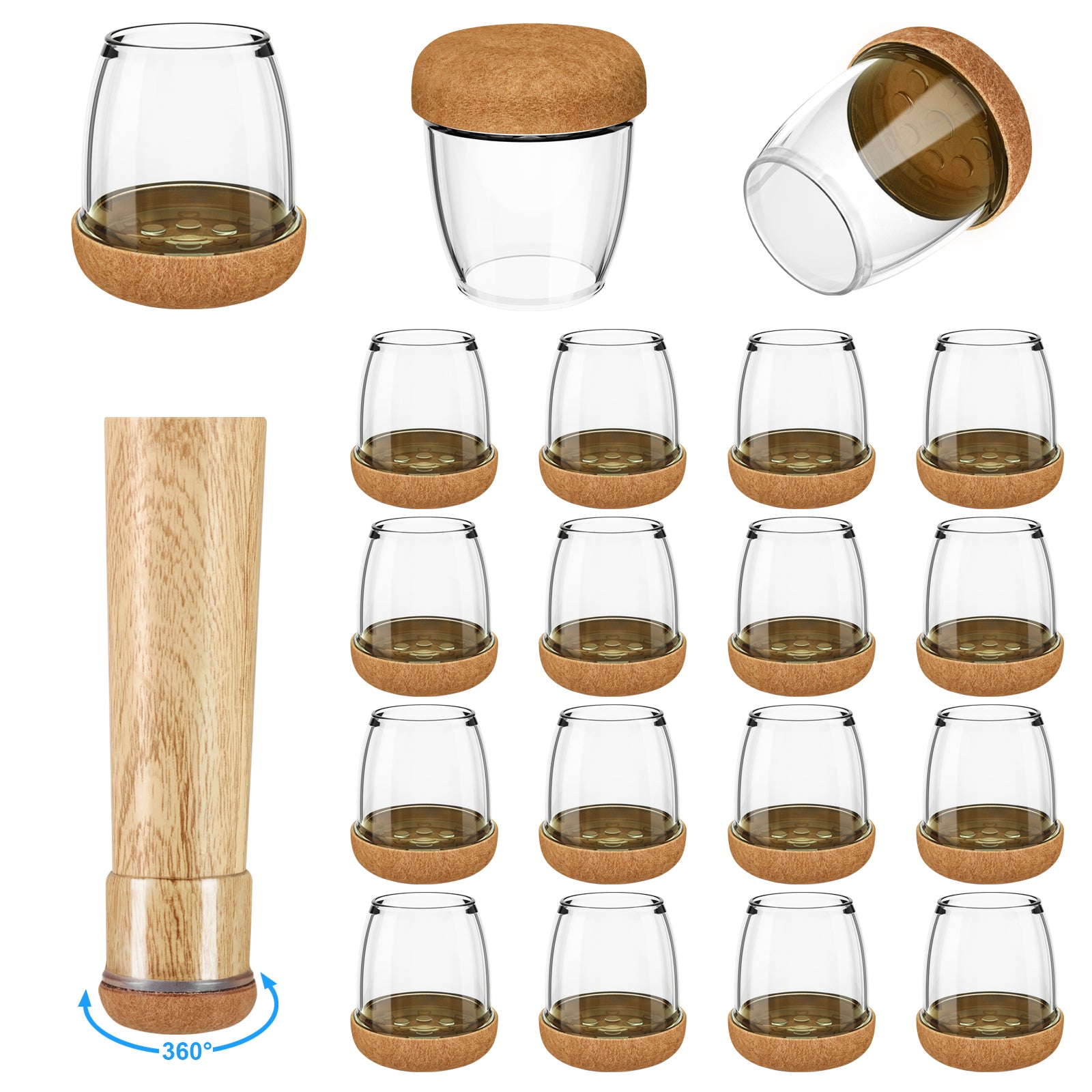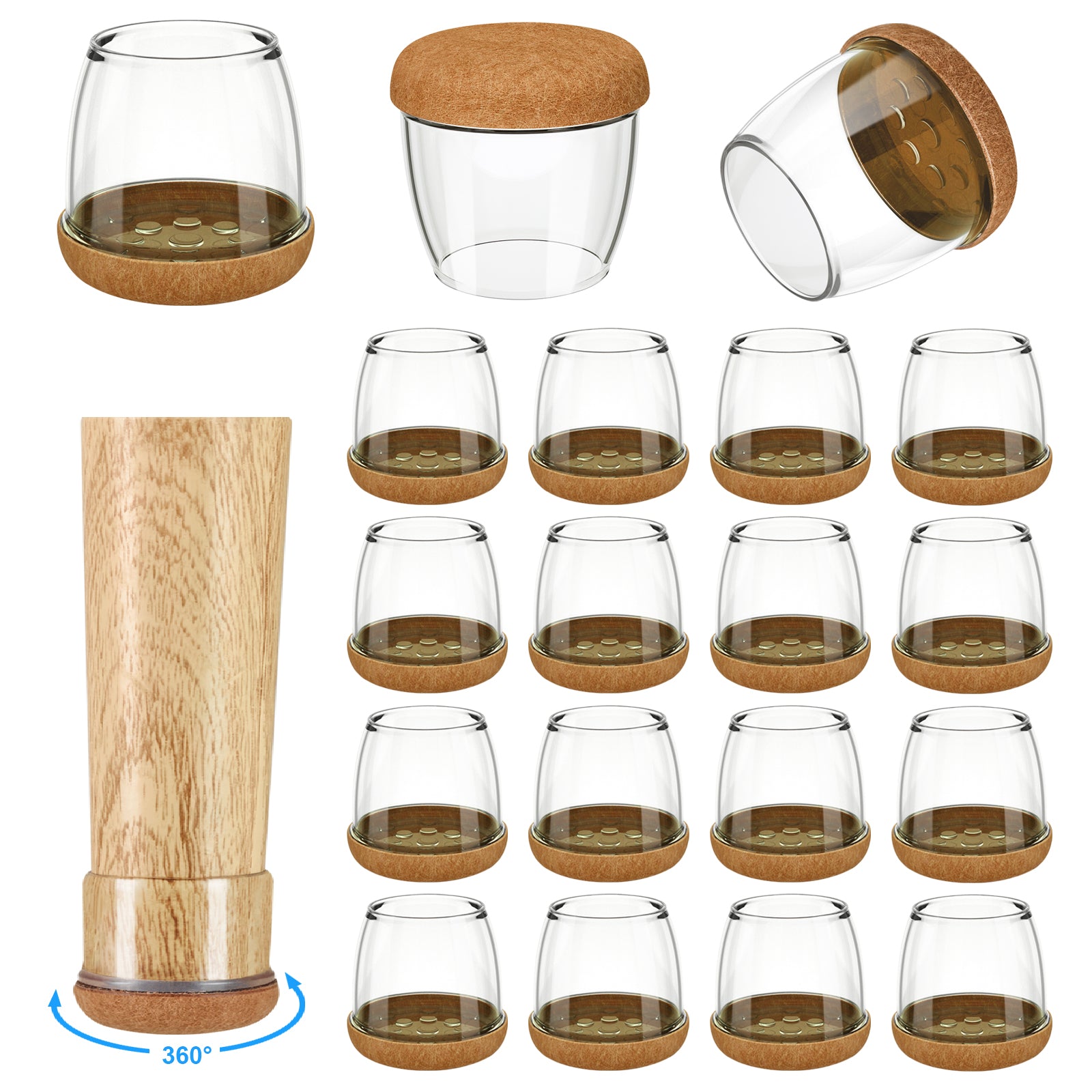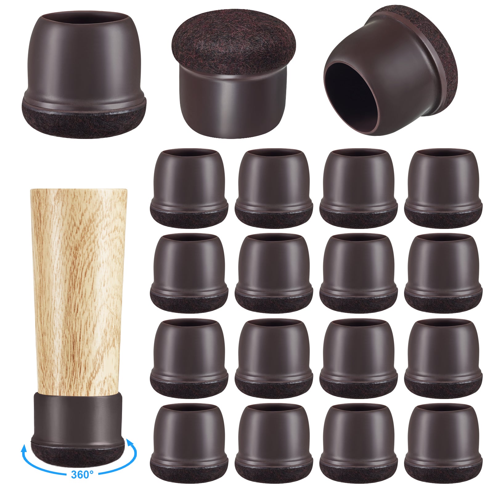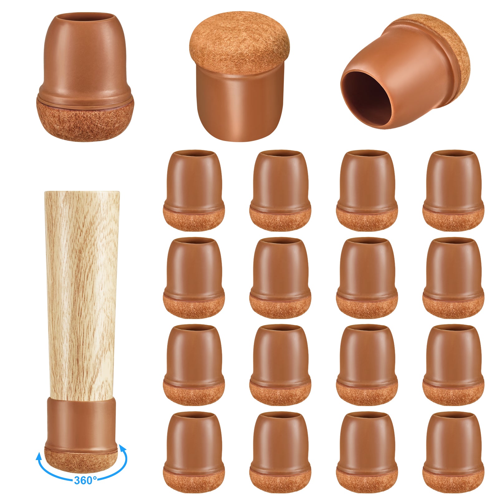 16 Pack Chair Leg Floor Protectors for Hardwood Floors, Round Rubber Furniture Sliders, 360°Felt Pad Bottom Wrapped Thickening Silicone Furniture Legs Caps Covers